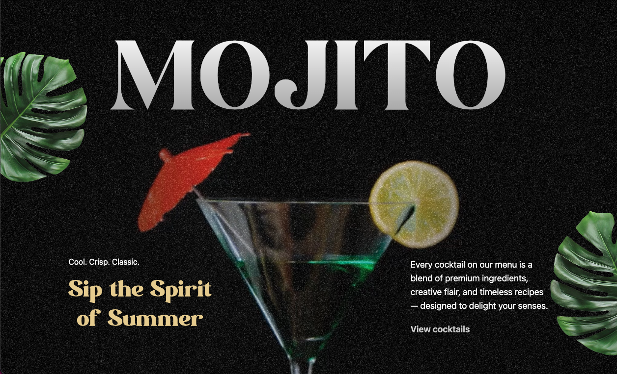 A modern cocktail-bar website with smooth micro-interactions, atmospheric visuals, and an elevated UI that mirrors the bar’s premium experience.
